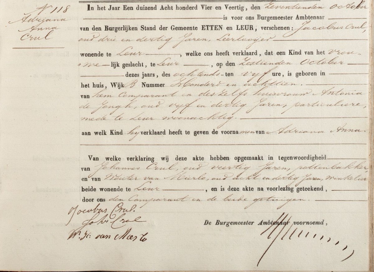 | Vader | Crul, Jacobus | | Moeder | Jongh, Antonia de | | | |