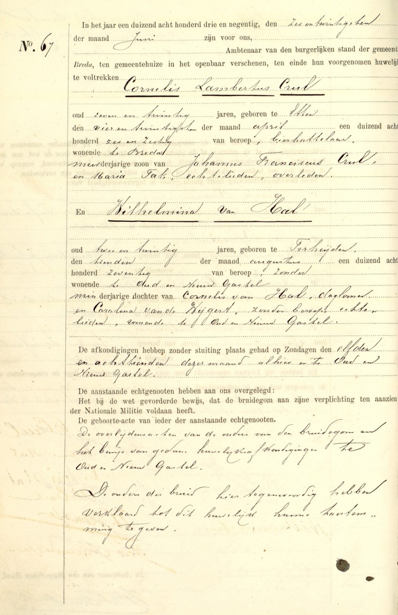 van Hal: Rijksarchief Noord-Brabant, Toegang 121.027, Inventaris 1245, Akte 67 |