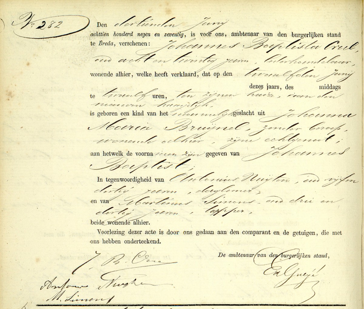 | Vader | Crul, Johannes Baptista (Johannes Bathista, Johannis Baptiste, Johannes Baptist) | | Moeder | Bruijnel, Johanna Maria | | | |
