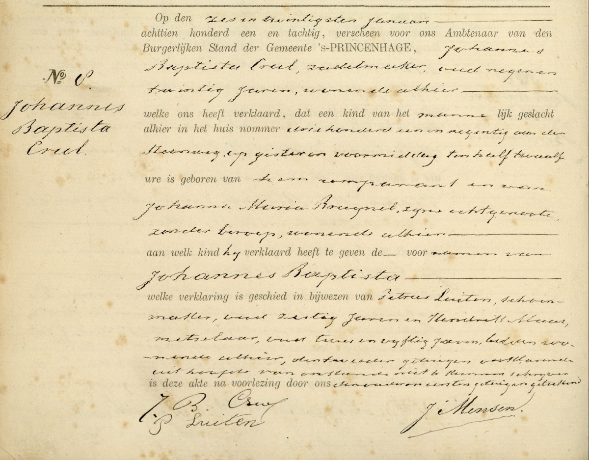 | Vader | Crul, Johannes Baptista (Johannes Bathista, Johannis Baptiste, Johannes Baptist) | | Moeder | Bruijnel, Johanna Maria | | | |