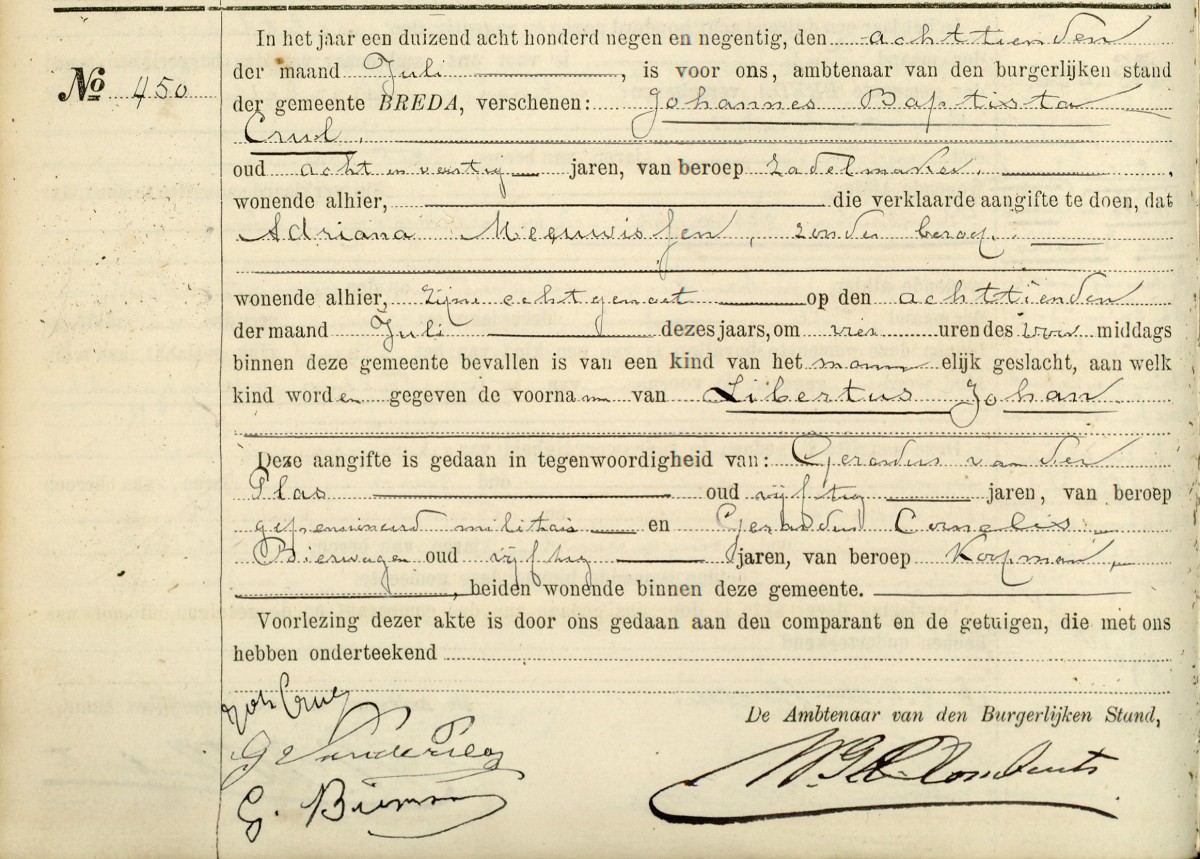| -Aangifte geboorte | di 18 jul 1899; BS Breda, Akte 450 | | -Overlijden | http://www.vanunen-stamboom.nl |