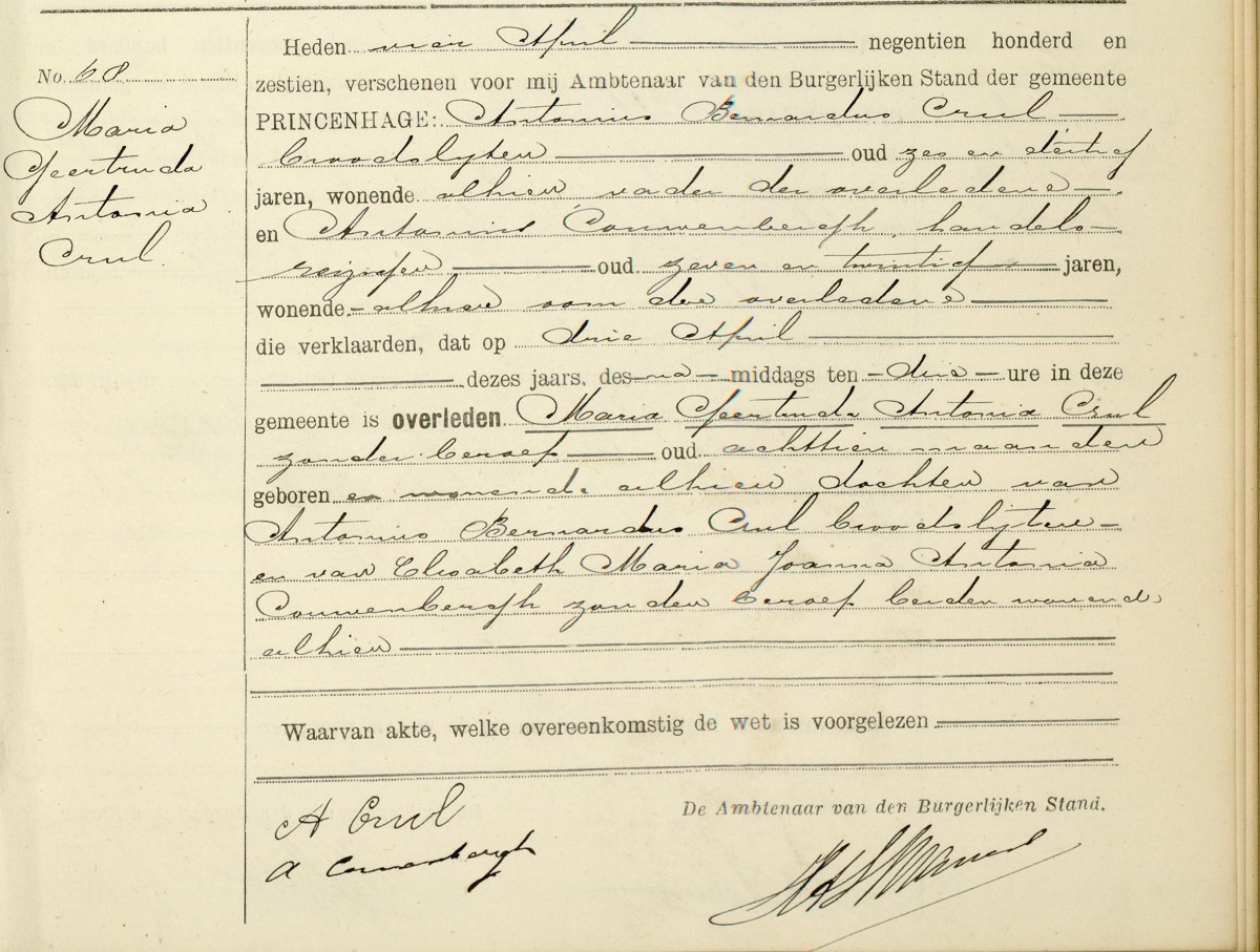 | Vader | Crul, Antonius Bernardus (Anton) | | Moeder | Couwenbergh, Elisabeth Maria Joanna Antonia | | | |
