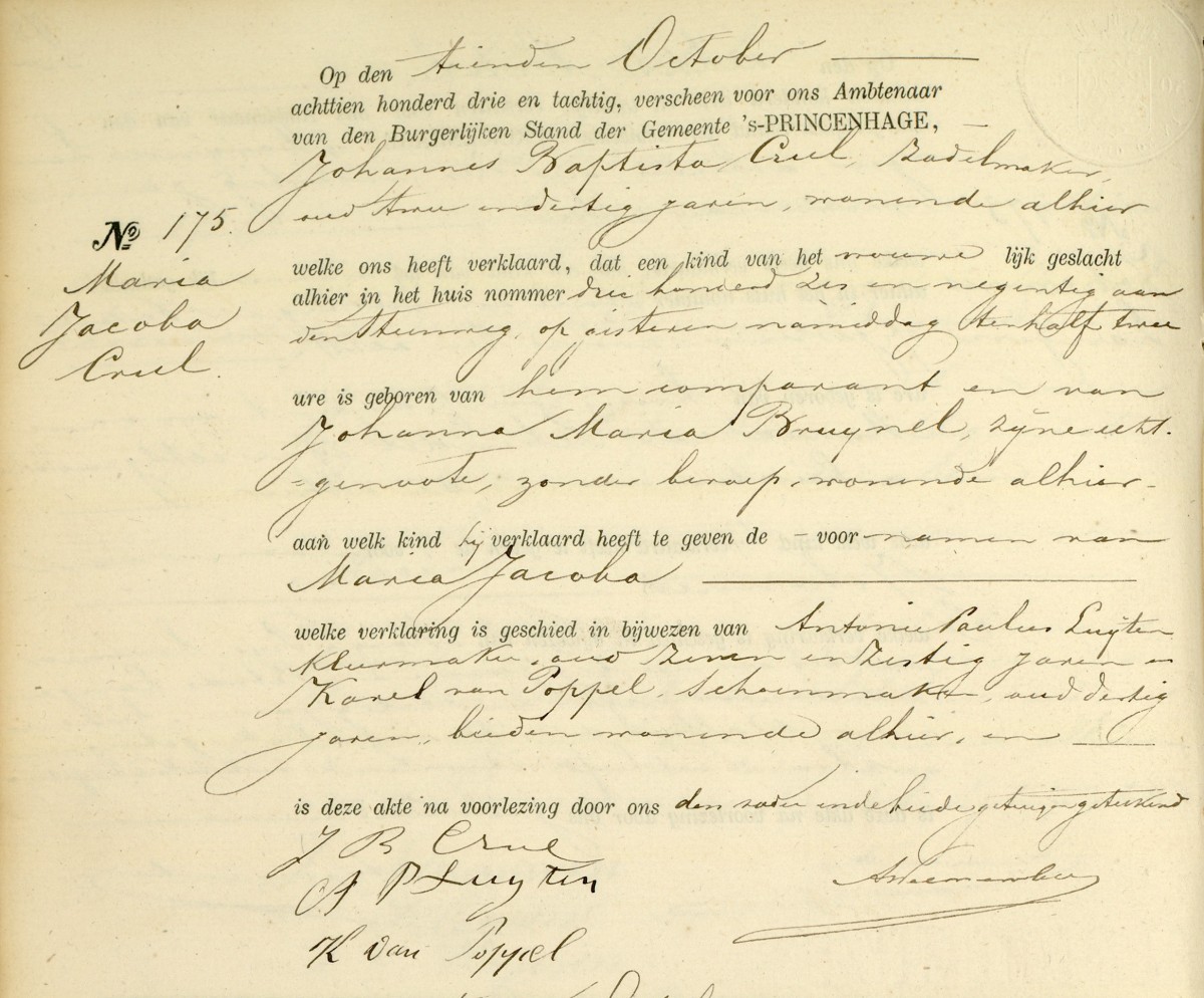 | Vader | Crul, Johannes Baptista (Johannes Bathista, Johannis Baptiste, Johannes Baptist) | | Moeder | Bruijnel, Johanna Maria | | | |