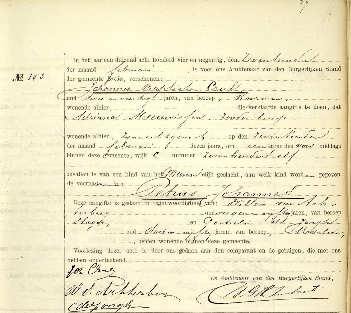 | -Aangifte geboorte | za 17 febr 1894; BS Breda, Akte 143 | | -Overlijden | http://www.vanunen-stamboom.nl |