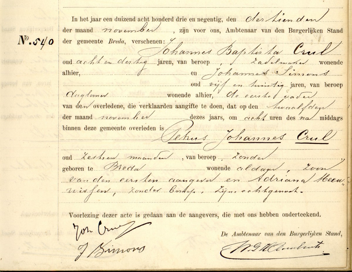 | Overleden | zo 12 nov 1893 te Breda |