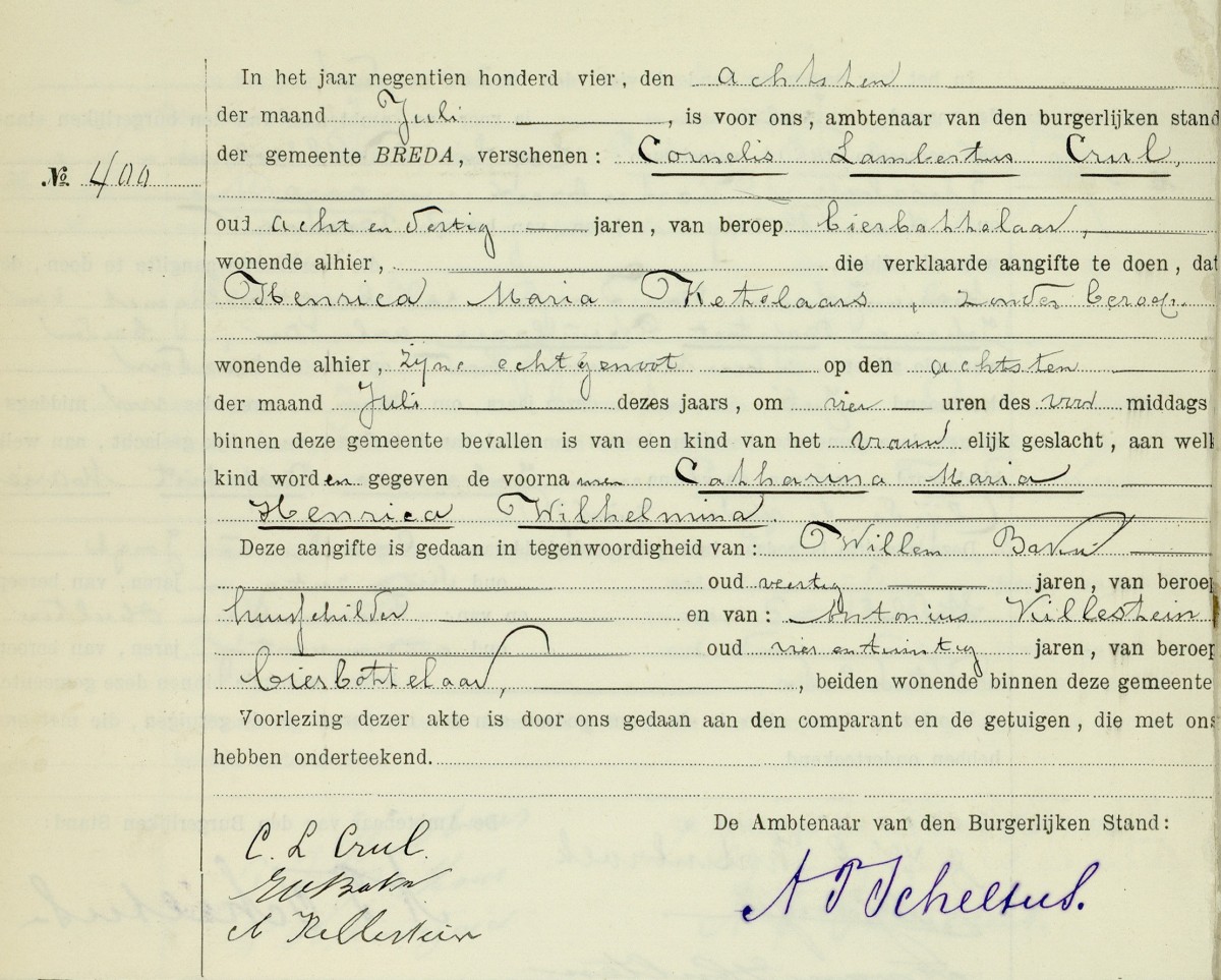| -Aangifte geboorte | vr 8 jul 1904; BS Breda, Akte 400 | | -Overlijden | http://www.vanunen-stamboom.nl |