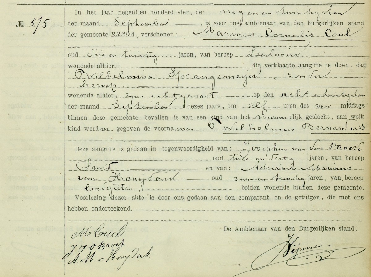 | -Aangifte geboorte | do 29 sept 1904; BS Breda, Akte 575 | | -Overlijden | http://www.vanunen-stamboom.nl |
