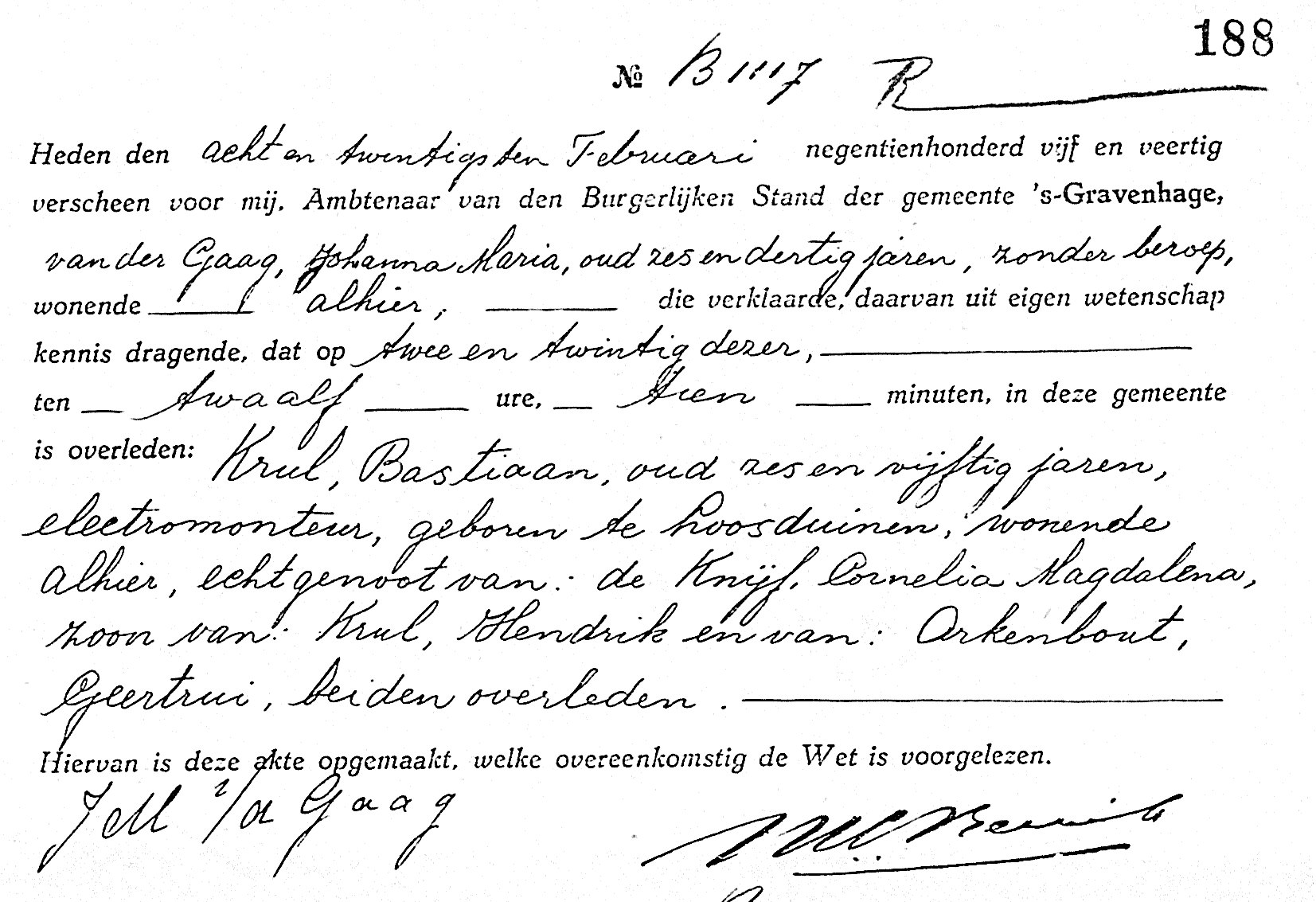 | Overleden | do 22 febr 1945 te Den Haag |