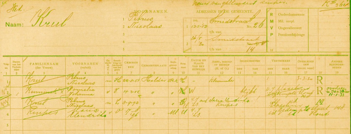| -Geboorte | Gezinskaart | | -Aangifte overlijden | do 4 mrt 1920; Noord-Hollands Archief, Akte 68 | | -Begrafenis | http://www.schiltmeijer.nl |