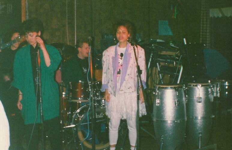 Juni 1988 - Maartensdijk. Francy zingt lead, Erik op drums, Rachel vervangt mij op gitaar.
