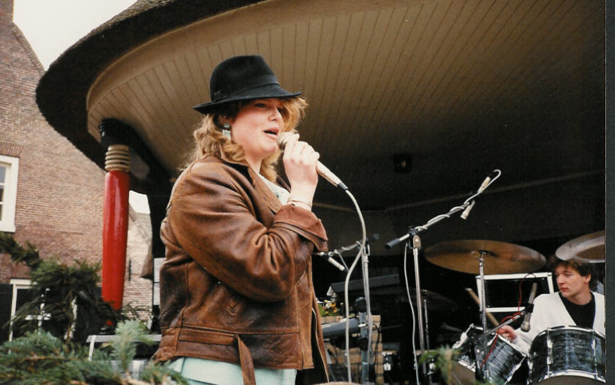 1991 - Kompasroos Huizen. Anne als leadzangeres, Ronnie Heijnen op drums.